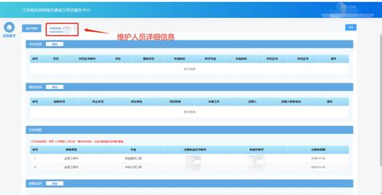 基本信息保存成功后,會(huì)出現(xiàn)詳細(xì)信息頁面,用于維護(hù)當(dāng)前人員的詳細(xì)信息如學(xué)歷信息、職稱信息、簡歷信息、注冊資格、技術(shù)工人技能證書、個(gè)人業(yè)績信息等。