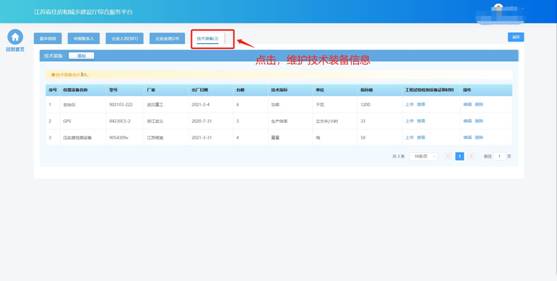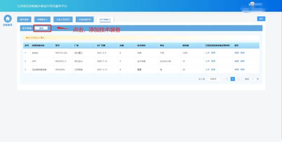 在技術(shù)裝備頁面中維護(hù)企業(yè)技術(shù)裝備信息。