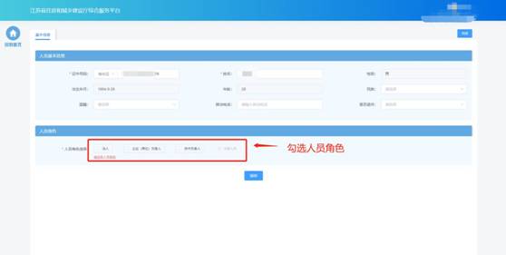 在“人員角色”板塊勾選人員對應(yīng)的角色,并填寫角色對應(yīng)的工作信息、上傳對應(yīng)的附件。其中,注冊人員角色為系統(tǒng)根據(jù)人員的注冊資格情況自動(dòng)勾選,不可由企業(yè)手動(dòng)選擇。