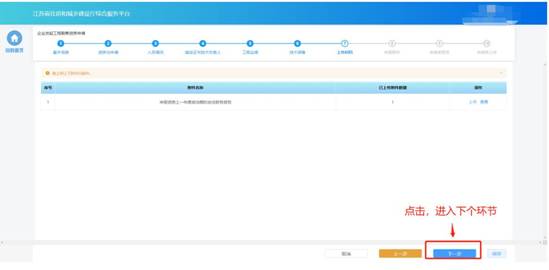 部分申請事項(xiàng)需要企業(yè)在申請流程中上傳與本次申請相關(guān)的附件,則申報(bào)流程會(huì)包含“上傳材料”環(huán)節(jié)。在“上傳材料”環(huán)節(jié)頁面上傳本次申請要求的附件,上傳完成后點(diǎn)擊“下一步”進(jìn)入下一個(gè)環(huán)節(jié)。